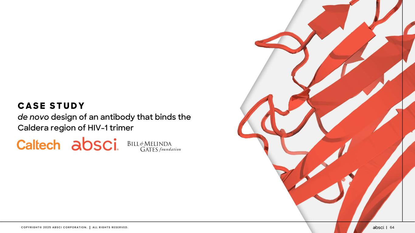 64C O P Y R I G H T © 2 0 2 5 A B S C I C O R P O R A T I O N . A L L R I G H T S R E S E R V E D . C A S E S T U D Y de novo design of an antibody that binds the Caldera region of HIV-1 trimer