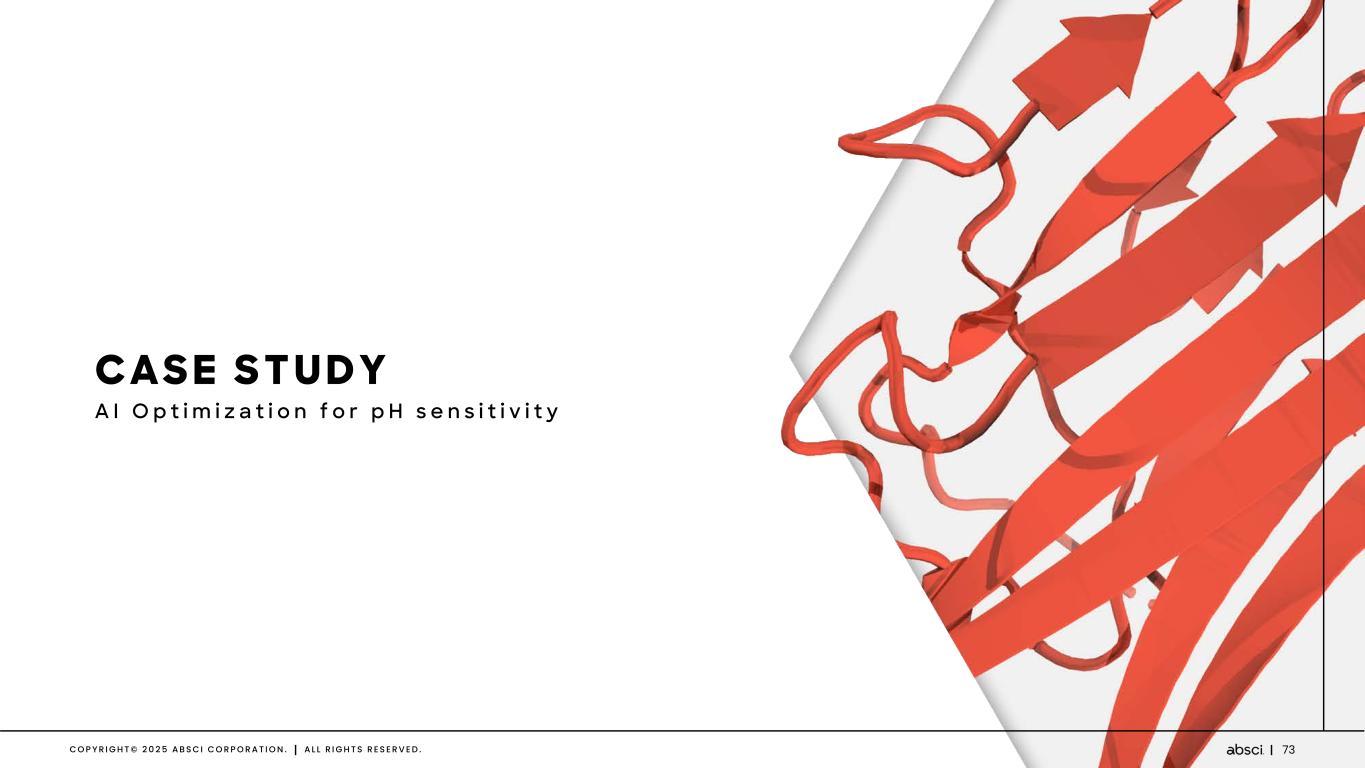 73C O P Y R I G H T © 2 0 2 5 A B S C I C O R P O R A T I O N . A L L R I G H T S R E S E R V E D . CASE STUDY A I O p t i m i z a t i o n f o r p H s e n s i t i v i t y